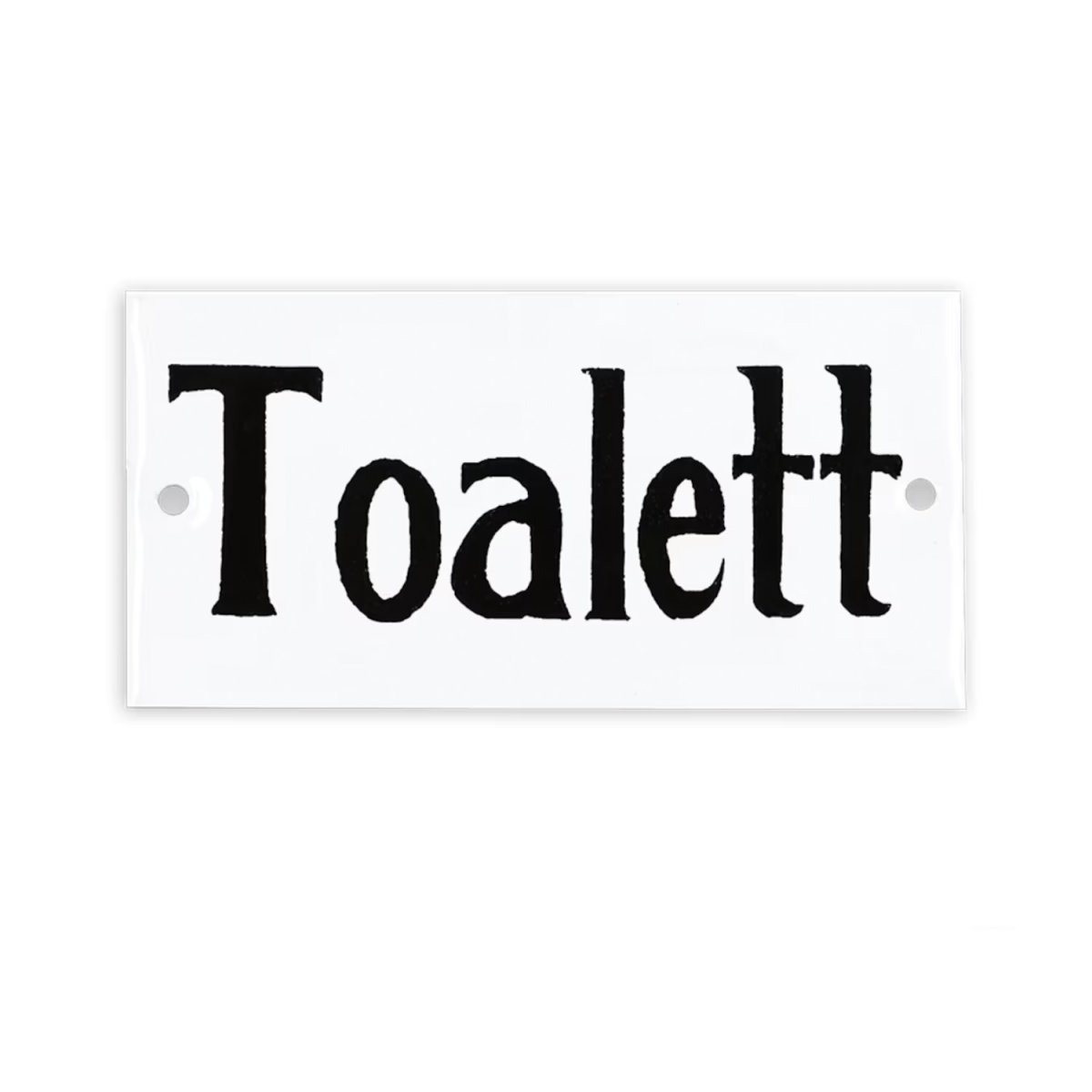 Klassisk emaljskylt med texten ”Toalett”. En stilren och dekorativ skylt som passar perfekt på dörren. Skylten har ett hål på varje sida för enkel och smidig upphängning.